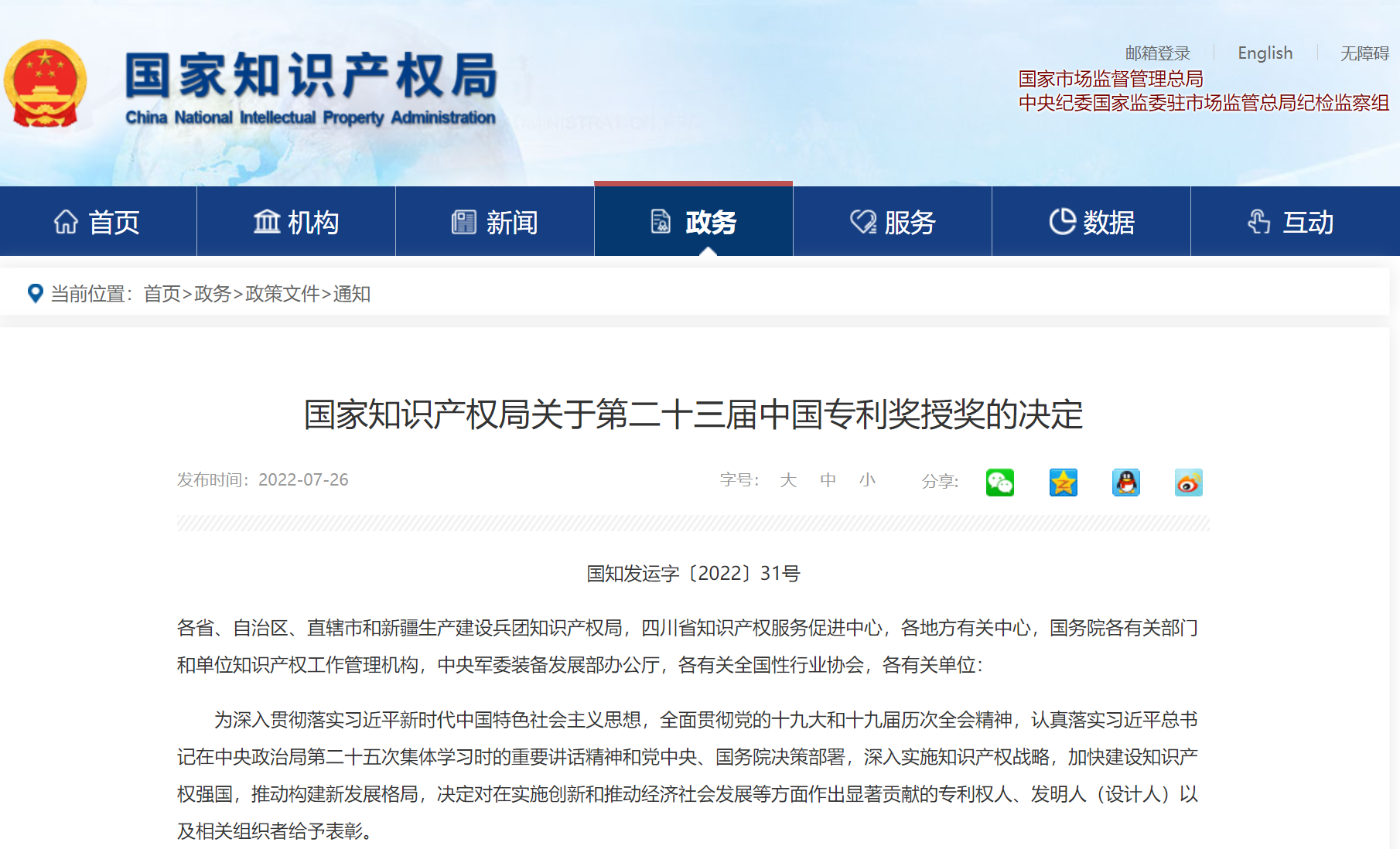 国家知识产权局关于第二十三届中国专利奖授奖的决定 (cnipa.gov.cn)