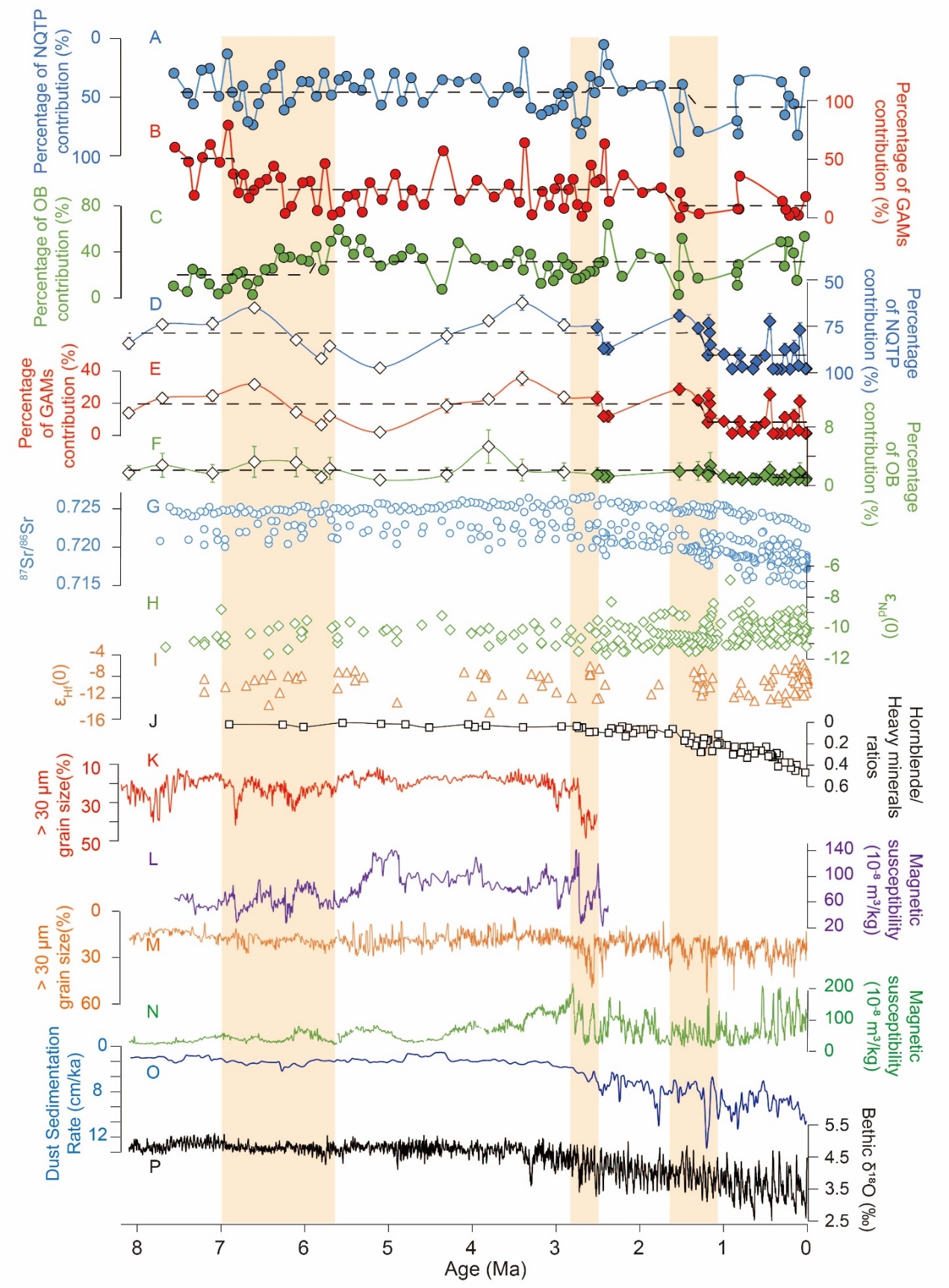 2. 800万年以来黄土高原沉积物锆石年龄谱变化指示的物源变化及与全球温度、亚洲季风气候变化的联系