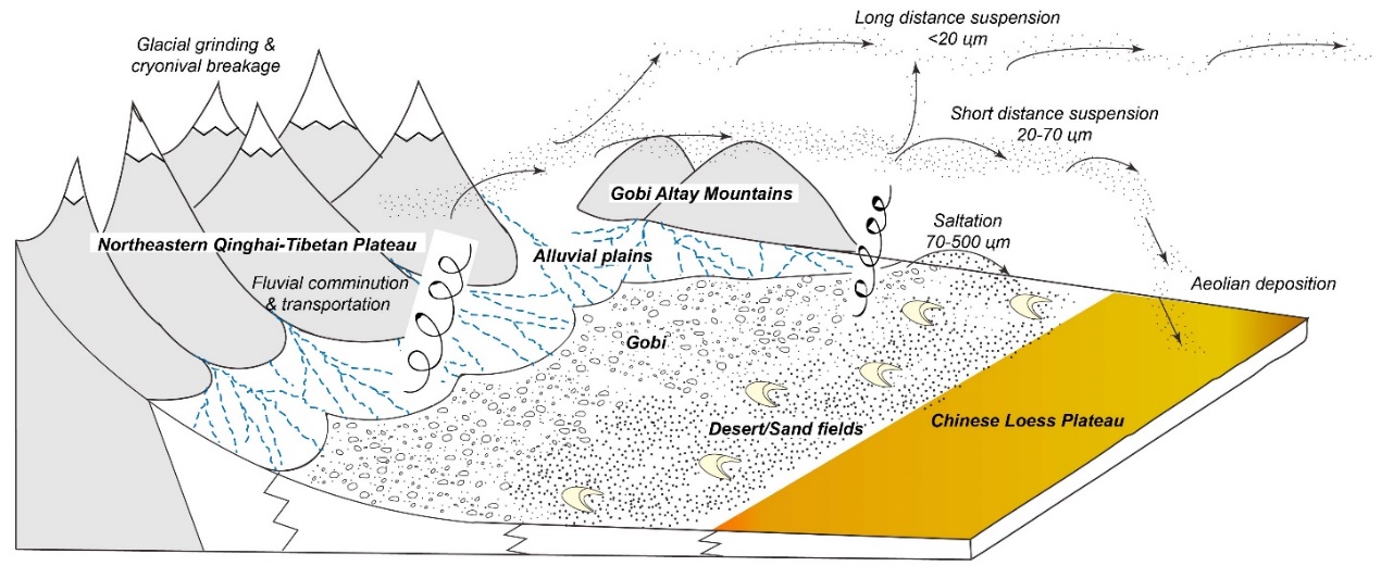 黄土高原是中华文化的发祥地,其独特的地貌气候和植被土壤组成,地球表层的重要景观。黄土高原堆积了厚层的粉砂物质,地形,植被为稀树草原和干草原。黄土高原跨越了山西陕西宁夏青海河南内蒙古等省区,我国重要生产和生活区域。长期以来,关于黄土高原的形成演化及其环境变化,吸引着诸多的科学家进行研究。在十九世纪后期,黄土高原风成成因的学说就已经提出。在十世纪八十年代,我国著名科学家,国家最高科学技术奖获得者我校杰出校友刘东生院士在《黄土与环境》专著中,提出了黄土高原形成于距今约260万年前,并且是风力搬运的粉砂颗粒(直径2-63微米)长期堆积的结果。这一奠基的研究结果,揭示了黄土高原的形成过程,是黄土高原形成演化的科学结论,成为后续研究的基础