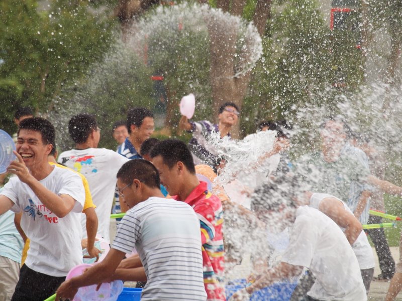 最后的“洗礼”将活动推入巅峰。一盆盆狂舞的清水洗去了同学们远途跋涉的辛劳,洗去了彼此间生源地的距离,新生们通过水的连接融为了一体。