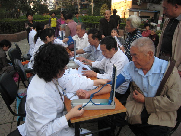10月8日是第14个全国高血压日。当日下午,校医院联合大方巷社委会在山西南村市民广场开展了主题为“知晓您的血压和控制目标”的大型宣传咨询活动。