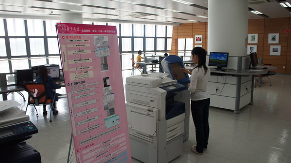 本次投入运行的4套自助打印、复印与扫描设备,分别位于仙林图书馆二层的信息共享大厅(3台)和期刊阅览区(1台),该项服务真正实现了无人化的管理,读者凭借校园卡进行身份确认与自助刷卡缴费。读者可在校园内任意一台装有打印客户端的机器上进行打印设置,不再受打印地点的限制;读者可在任意一套设备上进行复印与扫描操作,扫描的文档将自动发送到读者注册的邮箱。随着仙林图书馆的全面开放,在三层至五层还将陆续布设一定数量的设备,以方便师生使用。