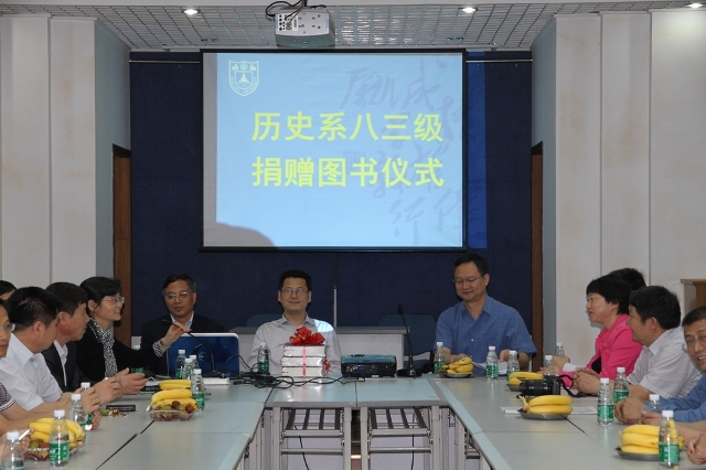 2013年5月31日,历史系八三级本科班55位同学回到母校,纪念他们入校三十周年。为感谢历史系的培养,该班级向母系捐赠了《金陵全书》。《金陵全书》是凯发k8官网历代文献总汇,由凯发k8官网出版社出版,总册数在400册以上,预计在未来10年内编纂完成出版。此次捐赠第一批50余册,总价值达5万元人民币。该班杰出毕业生、凯发k8官网出版社社长、总编辑卢海鸣表示,此后出版的各批次《金陵全书》仍将以八三级本科班全体同学的名义捐赠本系。