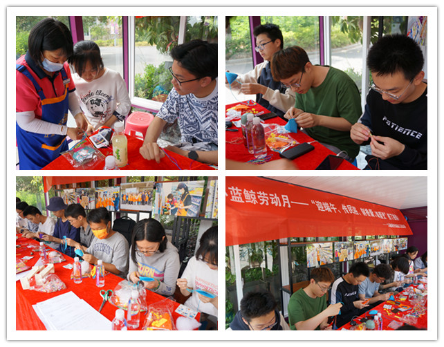 "迎校庆·花卉布置""厨艺体验课堂""‘南工坊’变废为宝手工创意制作""点心DIY制作体验""‘迎端午·传民俗’手工制作"等活动把"小蓝鲸劳动月"主题与校庆、端午、环保等紧密结合,赋予劳动更多的教育意义。各活动中,指导老师们耐心讲解要领,精心示范,热心指导;同学们仔细观察、学思结合、发挥才智。一盆盆不起眼的花草经过自主设计造型构成美丽的校庆图案;一道道普通的食材经过精雕细琢、精妙搭配成美好寓意的菜肴和点心;一件件闲置的物品通过灵巧的双手被赋予新的生命,制作成创意工艺品;一份份艾叶、布料,一根根五彩线在飞针走线中制作成蕴含浓郁的历史气息、厚重的人文情怀的香囊、蛋兜……活动现场,劳动氛围浓厚,同学们展现出了极高的劳动热情和动手能力,他们在劳动中感受乐趣,体会价值。