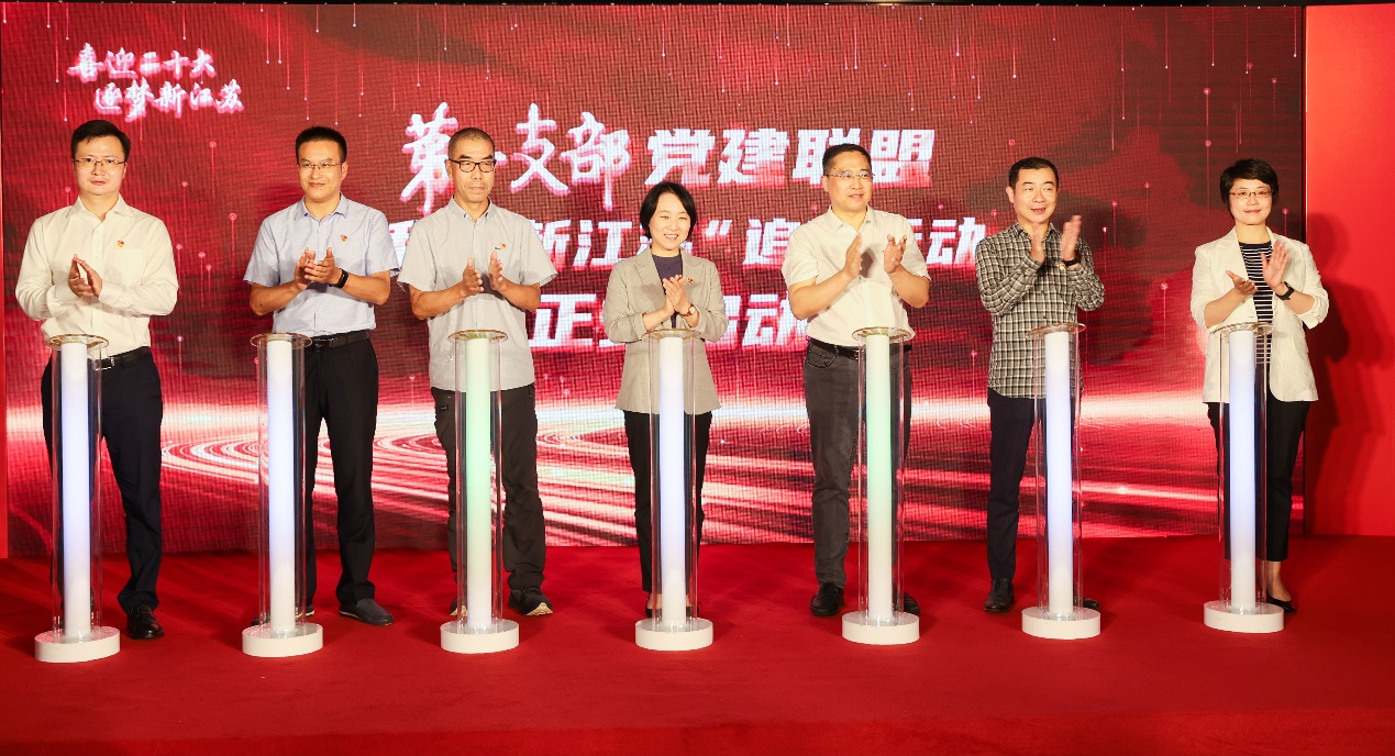 为展现新时代以来"强富美高"新江苏建设的"十年画卷",以实际行动迎接党的二十大胜利召开,9月14日下午,由江苏省委党史工作办公室、江苏省档案馆、凯发k8官网江北新区管委会等单位联合主办的"第一支部"党建联盟"我看新江苏"追梦行动启动仪式在江北新区智能制造产业园北斗大厦举行。我校审计处党支部书记骆威同志应邀出席活动,并在启动仪式上与参会嘉宾共同按下了启动按钮。