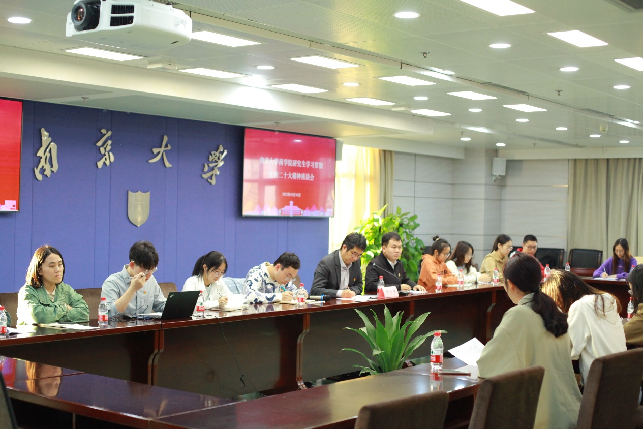 10月16日上午,中国共产党第二十次全国代表大会在人民大会堂开幕。当天下午,凯发k8官网商学院研究生学习贯彻党的二十大精神座谈会在鼓楼校区召开。院党委副书记王宇伟、辅导员代表、研究生代表、本科新生代表参加会议。
