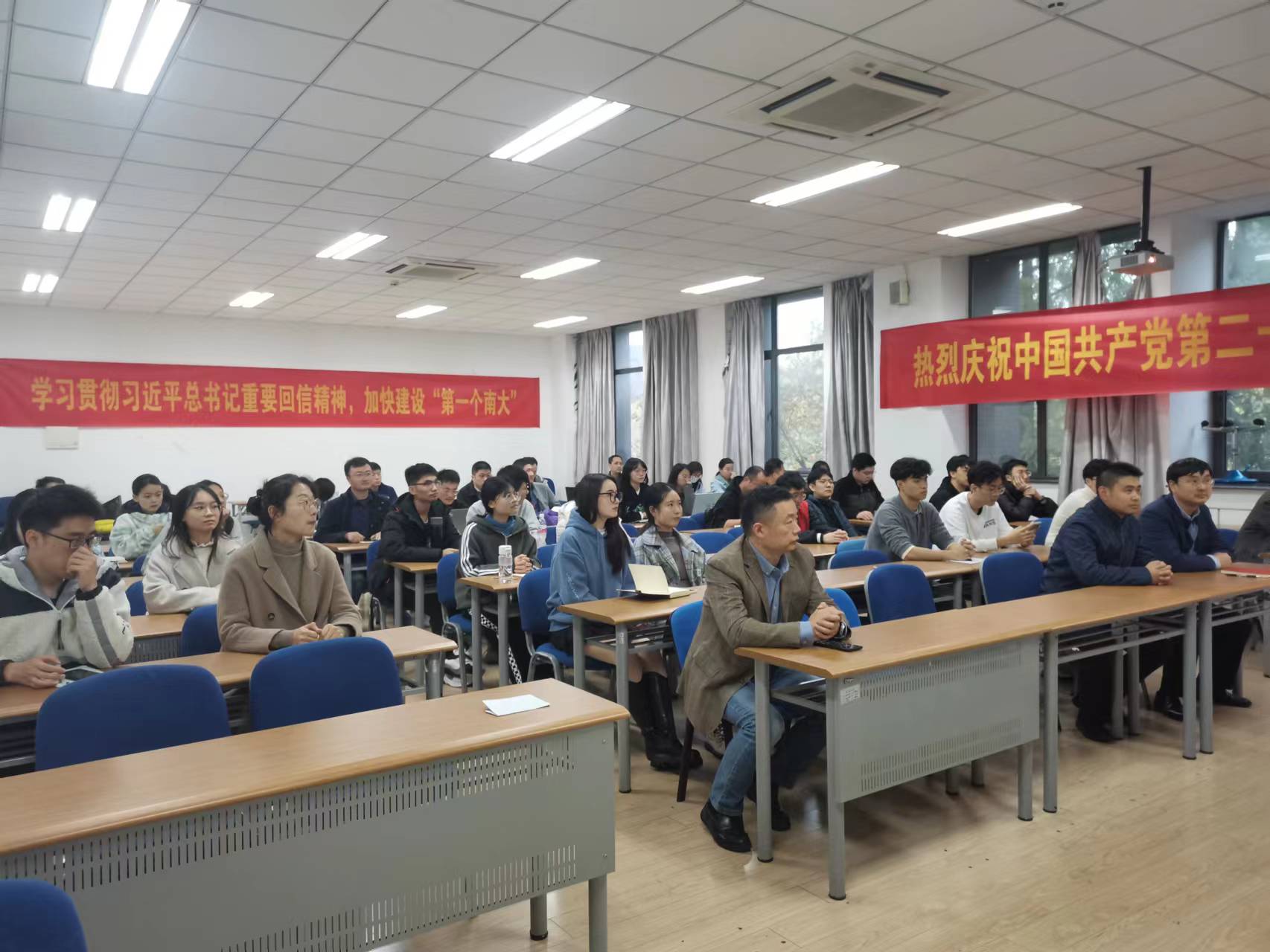 校党委组织部束方银老师做主题为"以党的二十大精神为指引,做好新时代高校党支部建设工作"的培训讲座,从加强支部建设的重要意义、加强支部建设的实践路径、做好党支部建设的重点工作、用好党支部建设的条件保障和当好新时代高校党支部书记五个方面展开了培训。他表示,加强党支部建设党内有传统、中央有要求、上级有部署、现实有需要。加强支部建设的实践路径要从标准化和特色化出发,标准化建设要全面进步、全面过硬,特色化建设要以点带面、示范带动。支部建设的重点要始终牢记支部教育、管理、监督党员,组织、宣传、凝聚、服务群众的七项基本职责,既要以目标为导向、抓规范促落实,又要以问题为导向、补短板强弱项。新时代高校党支部书记要认识到这份责任是组织和党员给予的信任,是对自己当初入党宣誓誓词的遵守,更是一份荣誉,要从政治、使命、学习、落实和作风不断加强自己的能力素养。