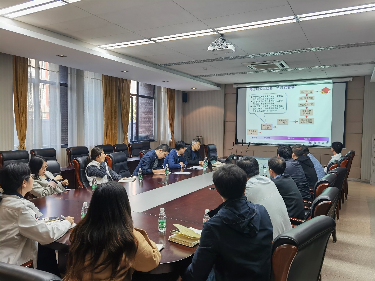 冯一军重点解读了学院博士生培养过程管理和导师考核方法。由博士生论文盲审制度为切入口,要求研究生导师对研究生培养进行"全过程管理",切实加强研究生培养质量。介绍了学院全面贯彻"破五唯",改革学位论文评价及质量标准,实行"1+N"制度,对标科学前沿和国家需求。介绍了导师考核方法,给导师们在职责和管理方面提出了要求,要重视学生道德品质和心理健康、注重过程管理。