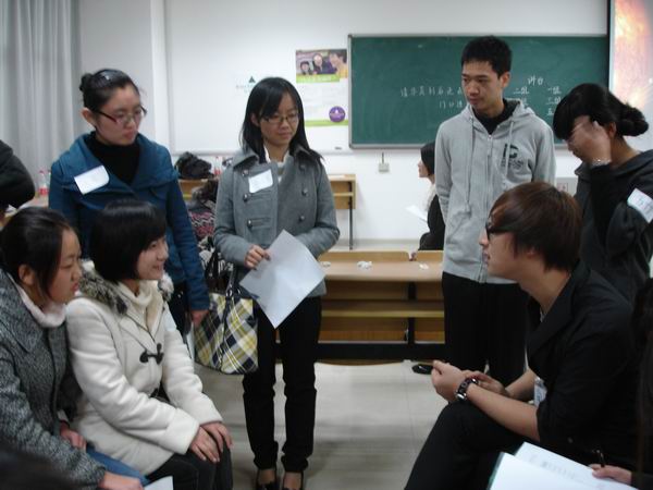 过程中,志愿者走进学生当中,一起完成小组讨论,接受大家咨询,在互动交流中,展示了他们独特的个人魅力。