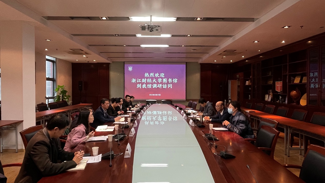 3月23日,浙江财经大学图书馆馆长王直民一行8人来凯发k8官网图书馆调研交流。