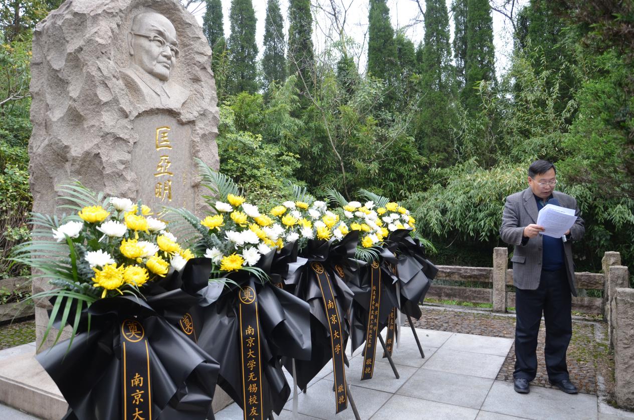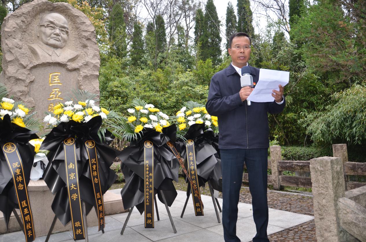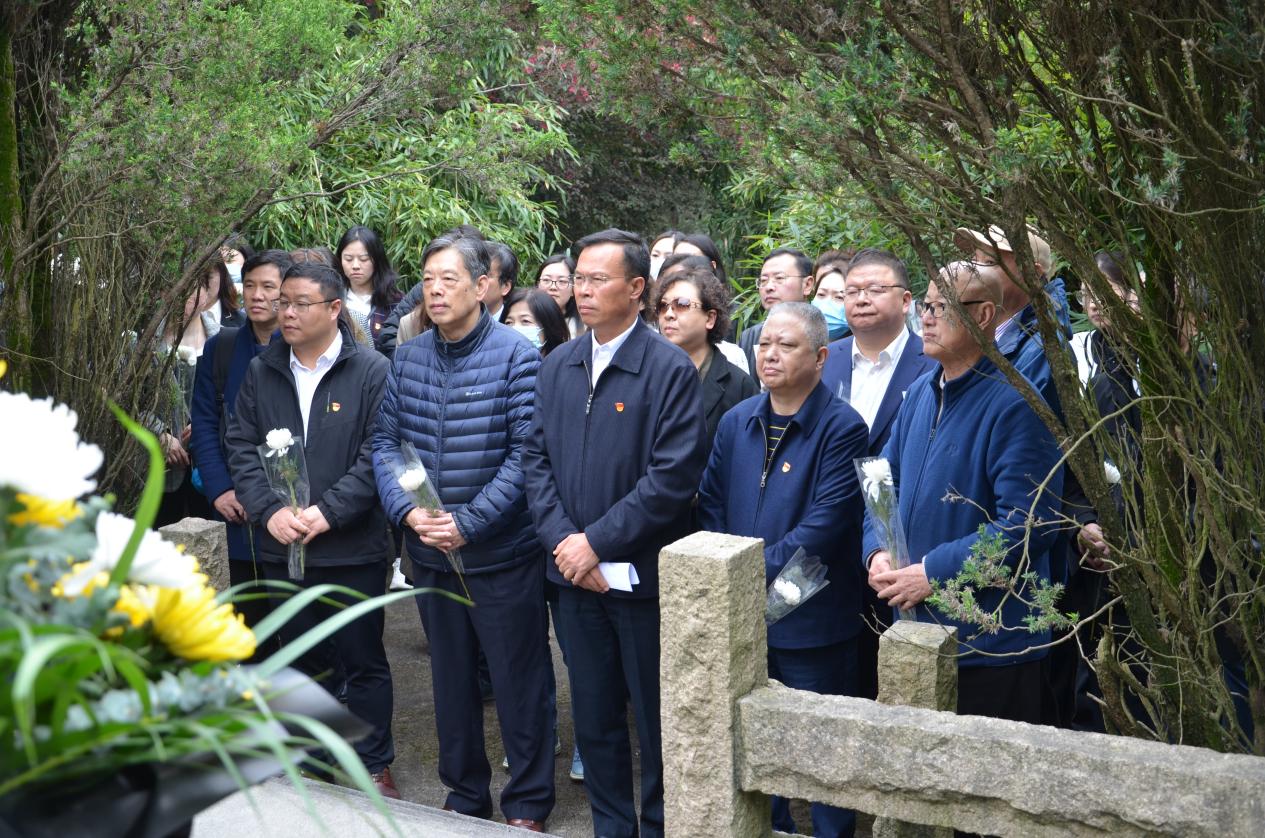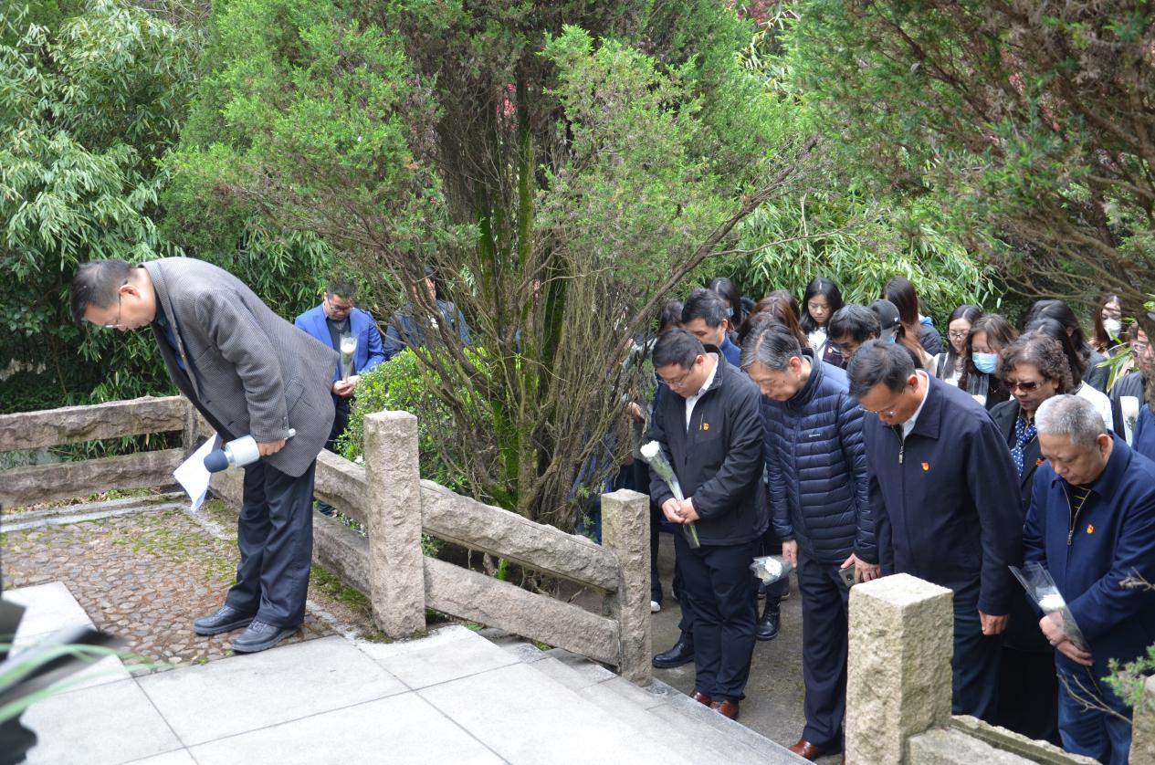 上午10时许,党员同志们在匡亚明校长墓碑前庄严肃立,沉重默哀,敬献花篮,全体同志三鞠躬,深切缅怀匡亚明校长。