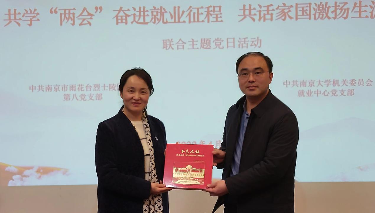 双方党支部接着举行了以深化价值引领、推进高校毕业生高质量就业为主要内容的馆校协同育人座谈会。雨花台烈士陵园管理局副局长葛俊杰同志说,历史是最好的教科书,党史是最好的营养剂,我们要从中汲取精神力量,学史明理、学史增信、学史崇德、学史力行。他介绍说,雨花台牺牲的英烈大都年纪轻、学历高、家境好,但他们追求真理,坚定信仰,不惧牺牲,英勇战斗。今天的和平幸福是先辈们流血牺牲换来的,要通过深化馆校合作,用好红色教育资源,在青年一代中传承红色基因,赓续红色血脉,激励青年成长。