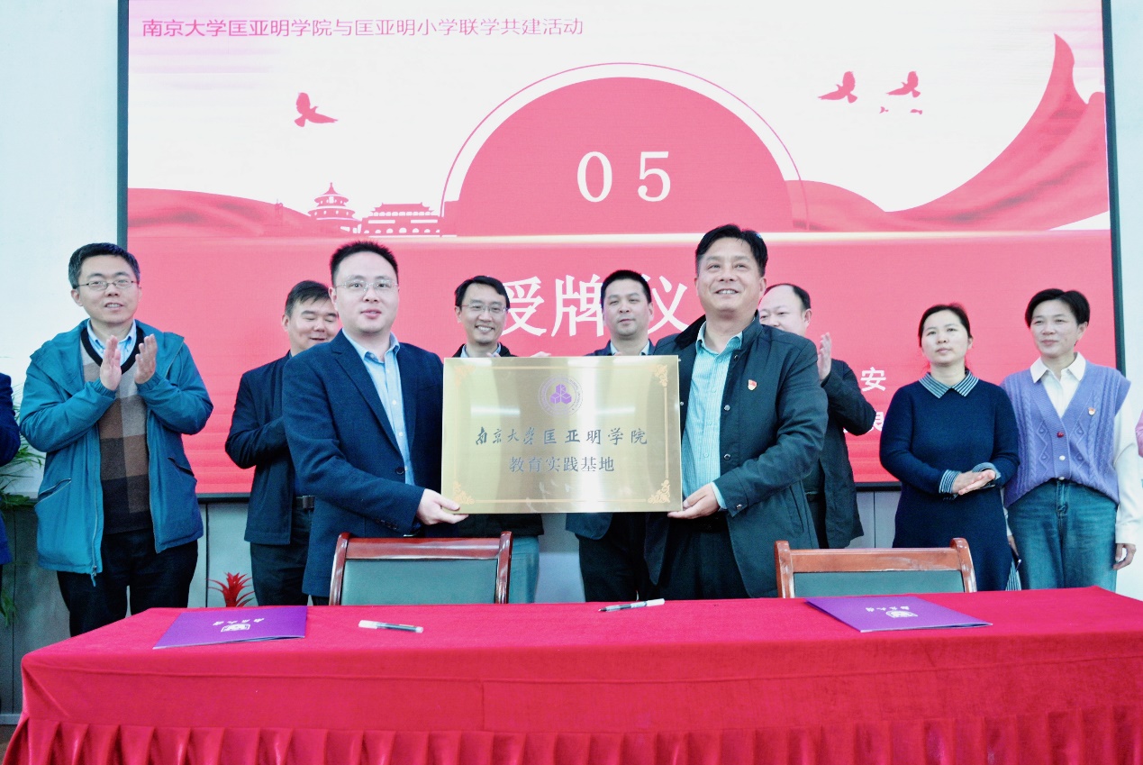 匡亚明学院党委副书记周安与匡亚明小学党支部书记蔡建良先生共同签署校外实践基地协议并授牌。