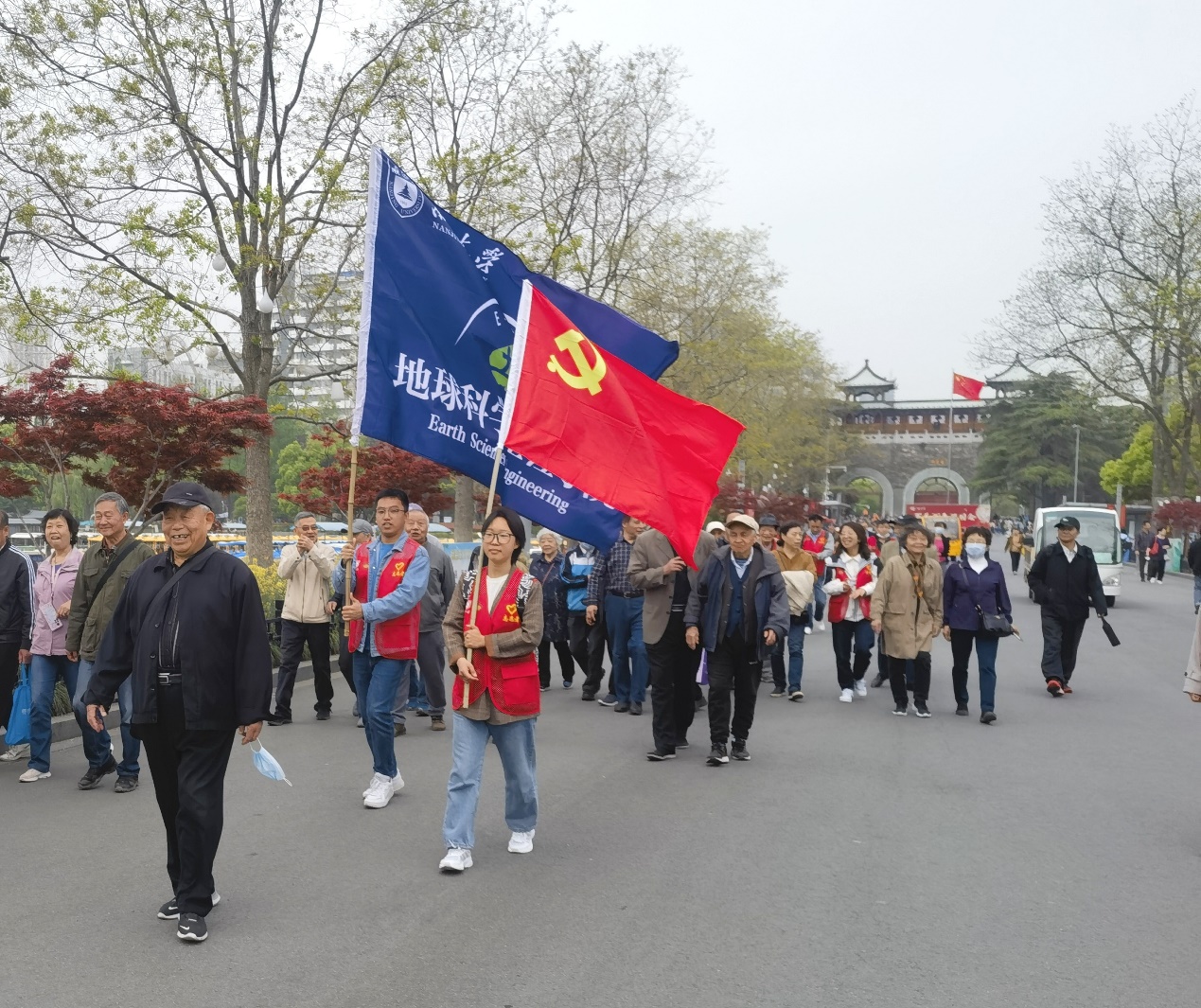 4月14日上午,我校离退休教职工环玄武湖健身走活动在玄武湖公园举行。校退休协会理事长凌元元、校退协副理事长兼秘书长杨圣伟、校退协常务理事等参加了活动。