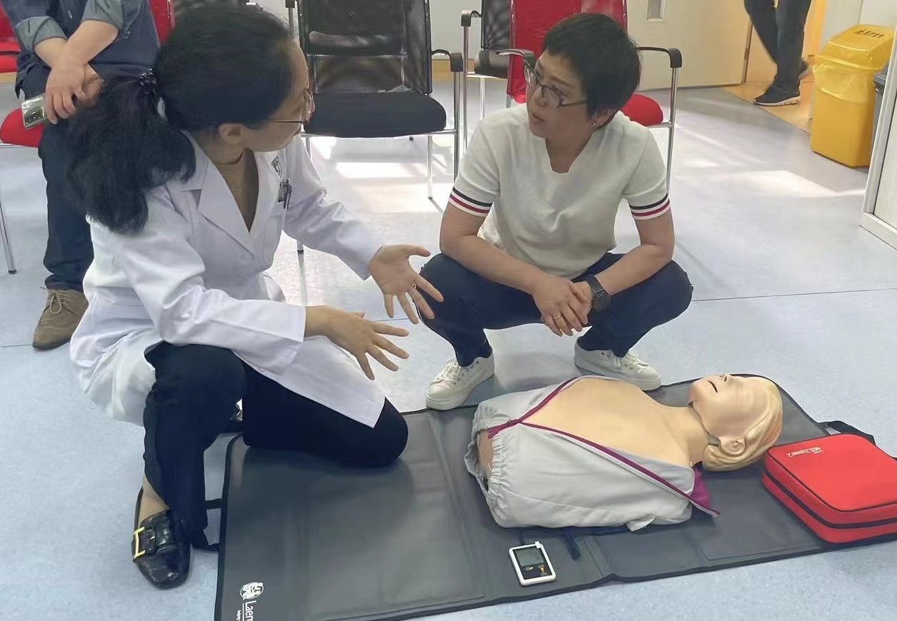 比如,考虑到心脏骤停的最佳抢救时间虽短,但却有"黄金4分钟"与生命赛跑的机会。活动中,肖瑞和徐国梅两位老师为在场的中心师生们详细讲解如何正确使用AED设备,以及为病人争取黄金救援时间的必要性和有效方法。