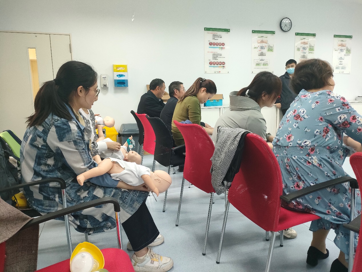 通过反复实操、耐心指导,中心师生掌握了AED设备的使用方法和操作细节。最后,肖瑞和徐国梅两位老师还为大家科普了生活中常见的急救知识和技能如海姆立克急救法等。