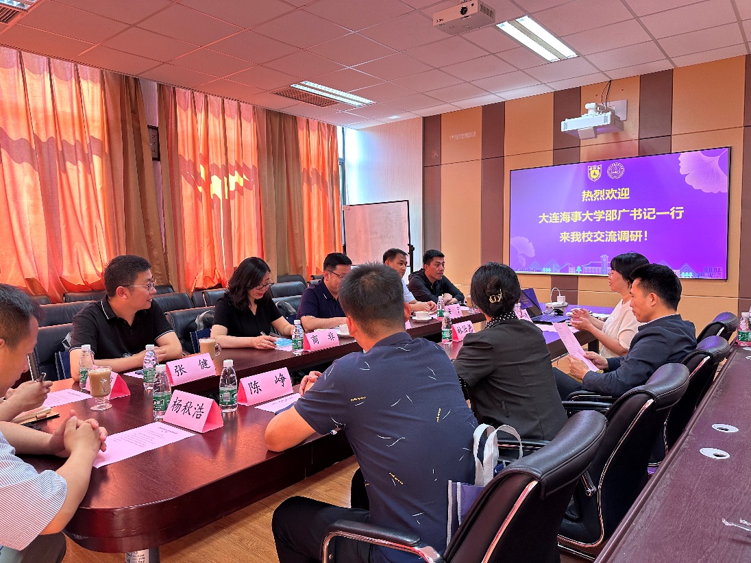 2023年5月23日,大连海事大学国际联合学院书记邵广、轮机工程学院副书记安宁、环境工程学院副书记商非等一行8人来访我校,双方就院系党建与学生工作交流座谈,本次交流也是一次学习贯彻习近平新时代中国特色社会主义思想主题教育的专题调研活动。我校大气科学学院党委书记林仕尧、电子科学与工程学院党委副书记孔令红、现代工程与应用科学学院团委书记李敏、化学化工学院院团委书记王一晴参加了本次交流座谈会。交流会由王一晴主持。
