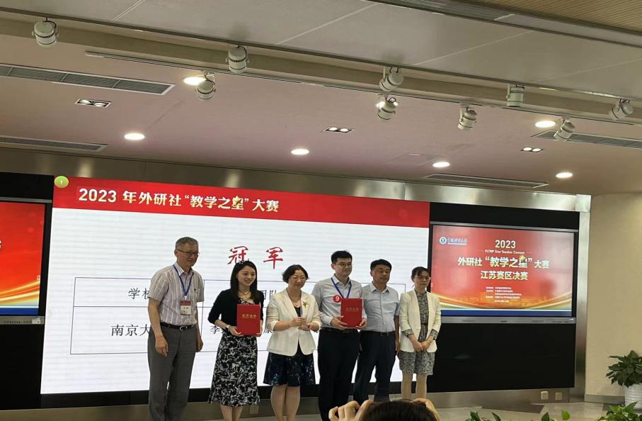 外研社"教学之星"大赛由教育部高等学校大学外语教学指导委员会、教育部高等学校英语专业教学指导分委员会和外语教学与研究出版社共同主办,是面向全国高校外语教师的大型公益赛事,被连续列入中国高等教育学会"全国普通高校教师教学发展指数"。江苏赛区的比赛分为校级初赛、省级复赛、省级半决赛和省级决赛四个阶段进行。在备赛的过程中,王海啸教授、陈新仁教授、王文宇教授等多次给予了精心指导。