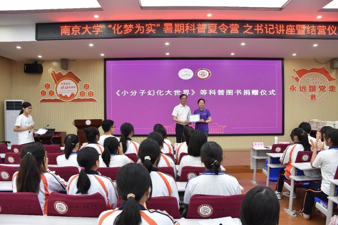 随后,凯发k8官网化学化工学院、凯发k8官网出版社分别向平坝一中捐赠科普图书及经典名著,实践团成员和参会领导为夏令营成员颁发结业证书、优秀营员证书。营员们把“未来寄语”投入“时间囊”,一张张明信片载满了此次夏令营理论知识与化学实验操作的收获,寄托了营员们对未来的期许,种下了一颗名为“化学”的种子。