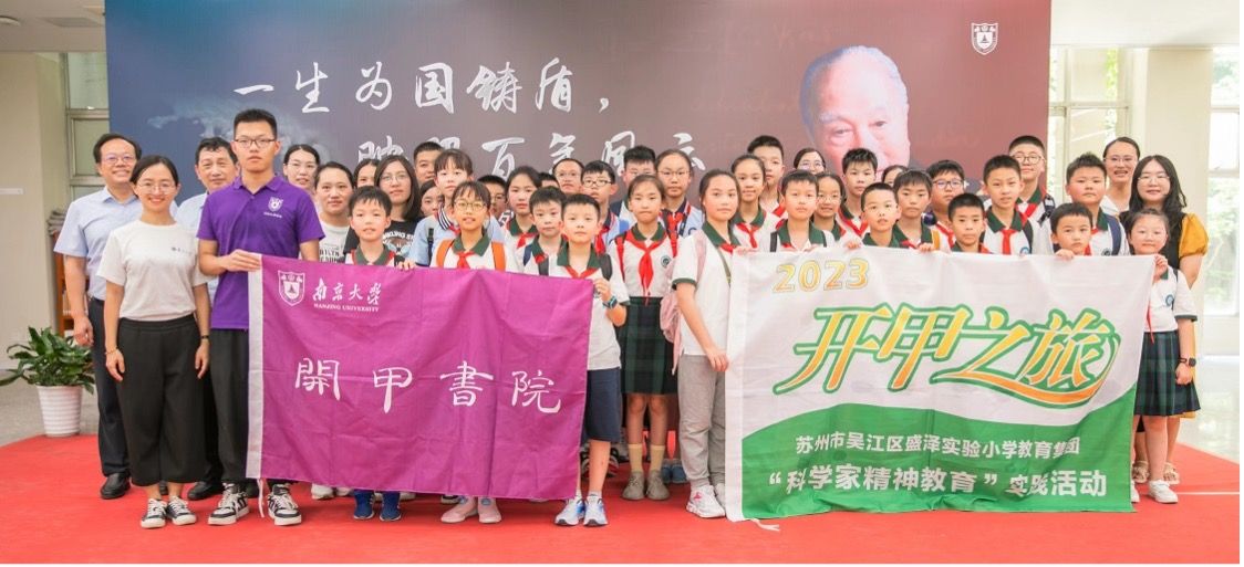 2023年8月11日,苏州市吴江区盛泽实验小学教育集团“开甲之旅——科学家精神教育”实践活动一行30余人抵达凯发k8官网站。程开甲先生弟子、凯发k8官网健雄书院院长施毅、图书馆馆长黄贤金及开甲书院师生代表、图书馆馆员一起参与接待,并与同学们一起合影留念。鼓楼校区图书馆张小青主任生动讲解了程开甲大先生展。