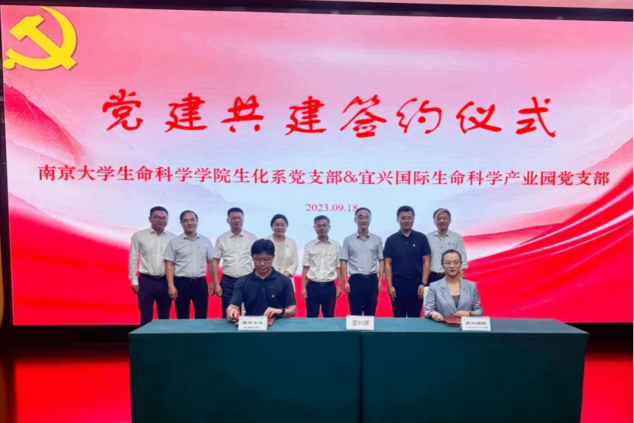 凯发k8官网生命科学学院党委委员、副院长朱景宁教授、党委委员田兴军教授分别进行了详细的科研项目介绍。最后,凯发k8官网生命科学学院生物化学系党支部书记丁智副教授和宜兴国际生命科技产业园党支部书记杨雅在双方领导的见证下签署了合作共建协议。