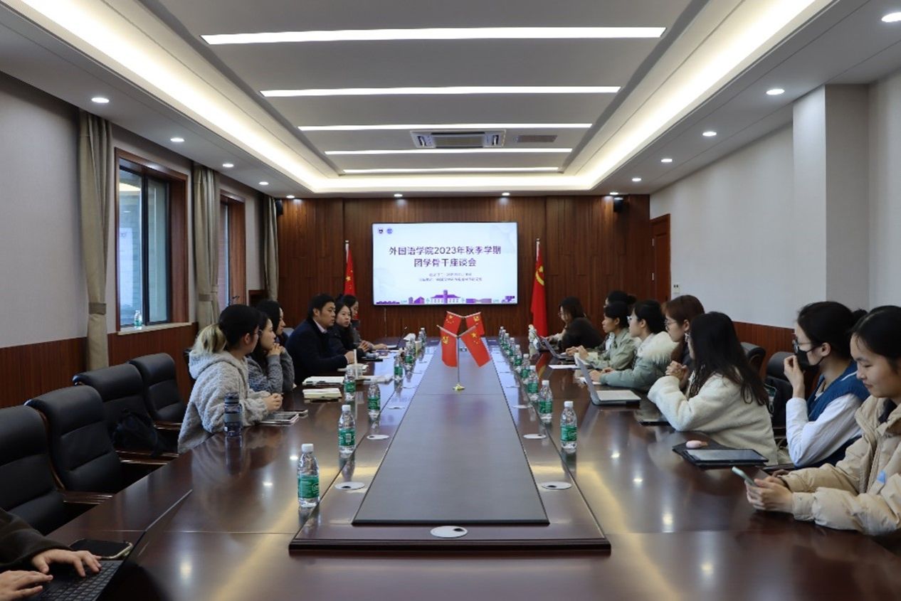 12月8日下午,外国语学院于侨裕楼举行团学骨干座谈会,旨在加强师生深度交流,倾听学生心声和意见建议,助力学生组织建设。外国语学院党委副书记孔剑锋、研究生辅导员魏晓伦、兼职辅导员于玥晗、本科生及研究生团学各部门负责人出席,团委副书记龙心悦主持会议。