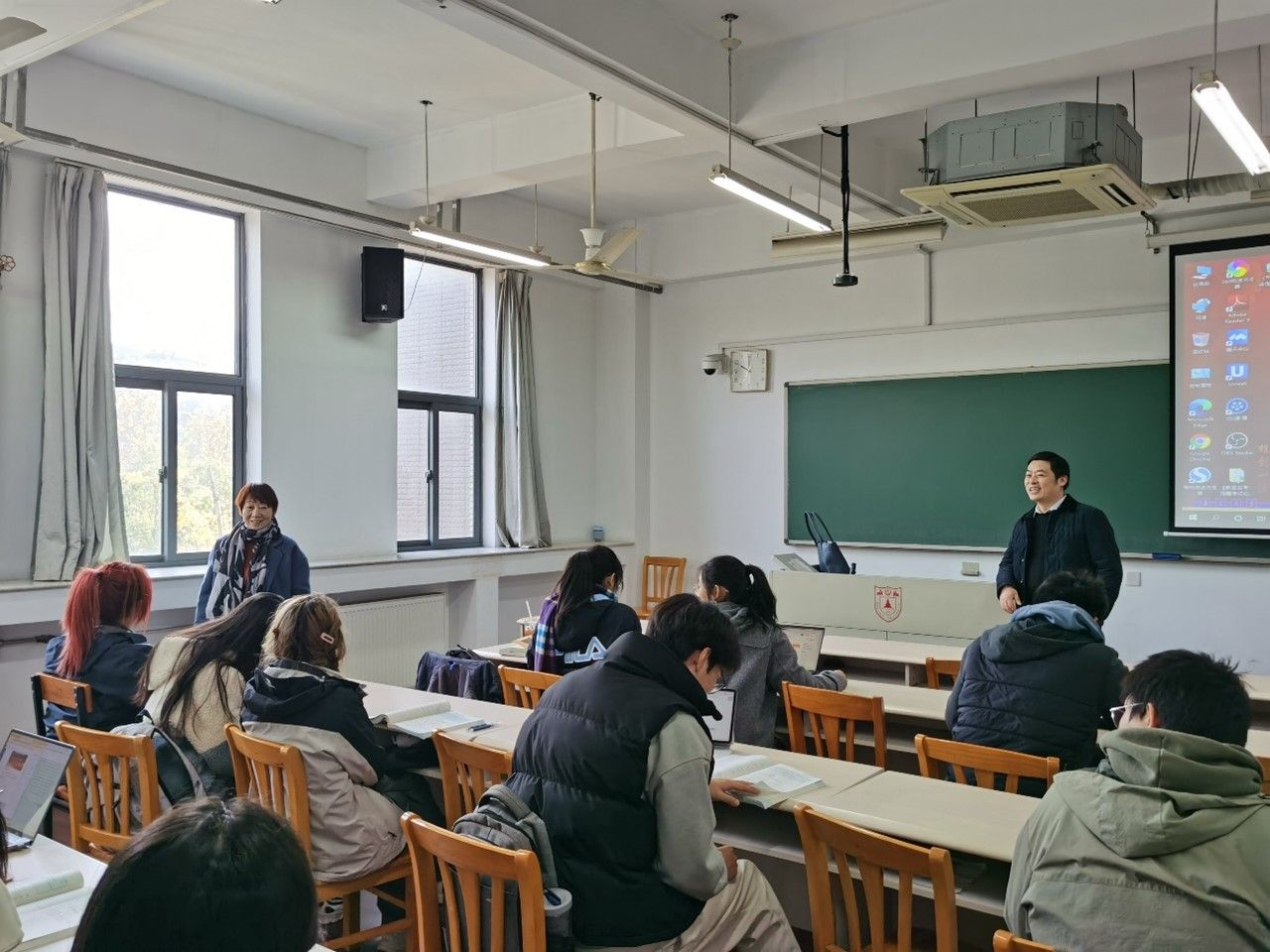 12月6日上午,外国语学院党委副书记孔剑锋老师、22级本科生辅导员魏桂红老师、21级本科生助理辅导员马宾前往仙Ⅰ教学楼,随机走进四间正在课间休息的教室,与不同年级、专业的外院学生面对面交流,关心学生身体健康,关注学生学业情况,调研学生课业主要问题,同时与多位任课教师充分沟通,了解课程教学内容,掌握学生课堂表现,建立有效联系,提升育人合力。