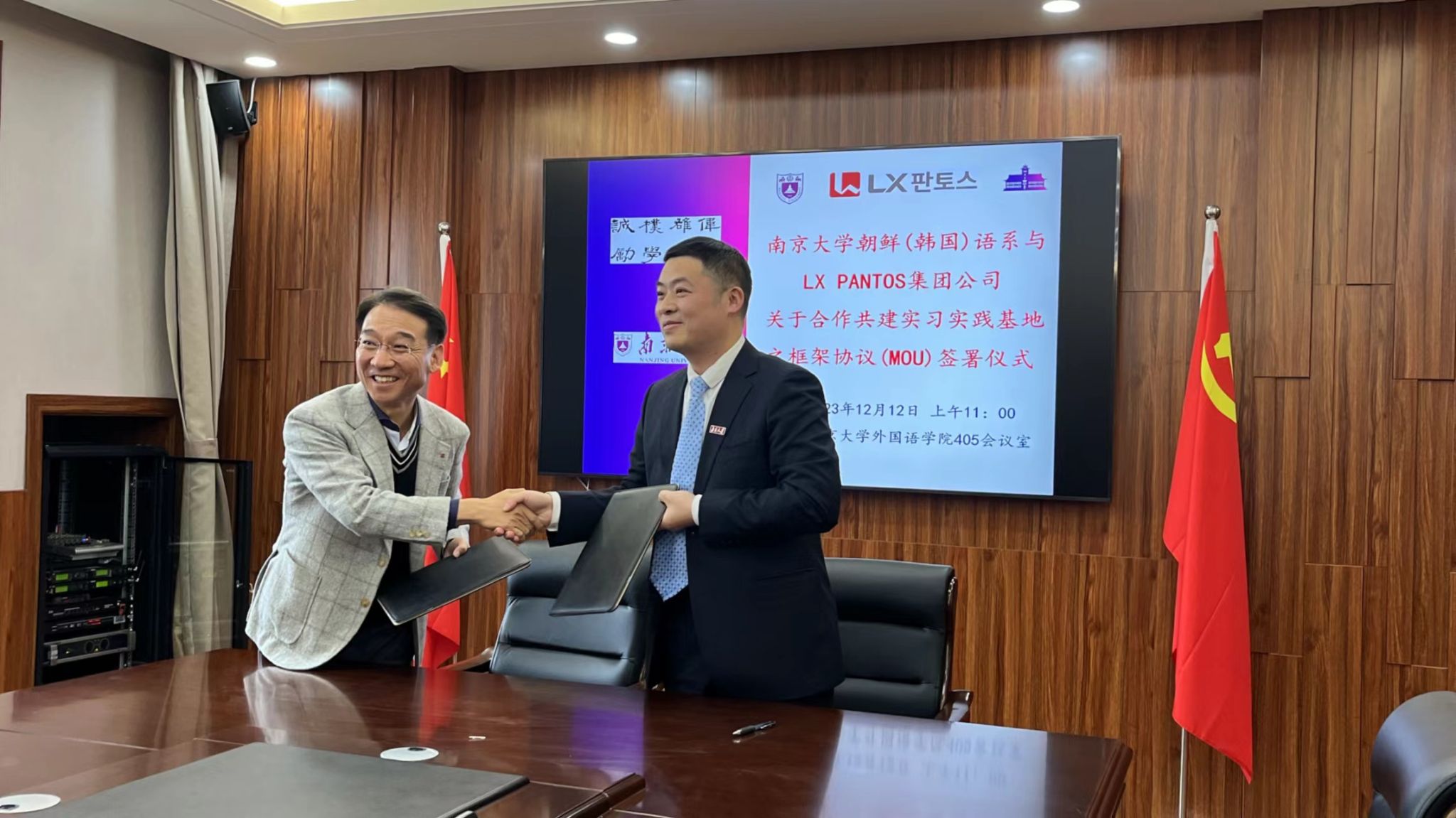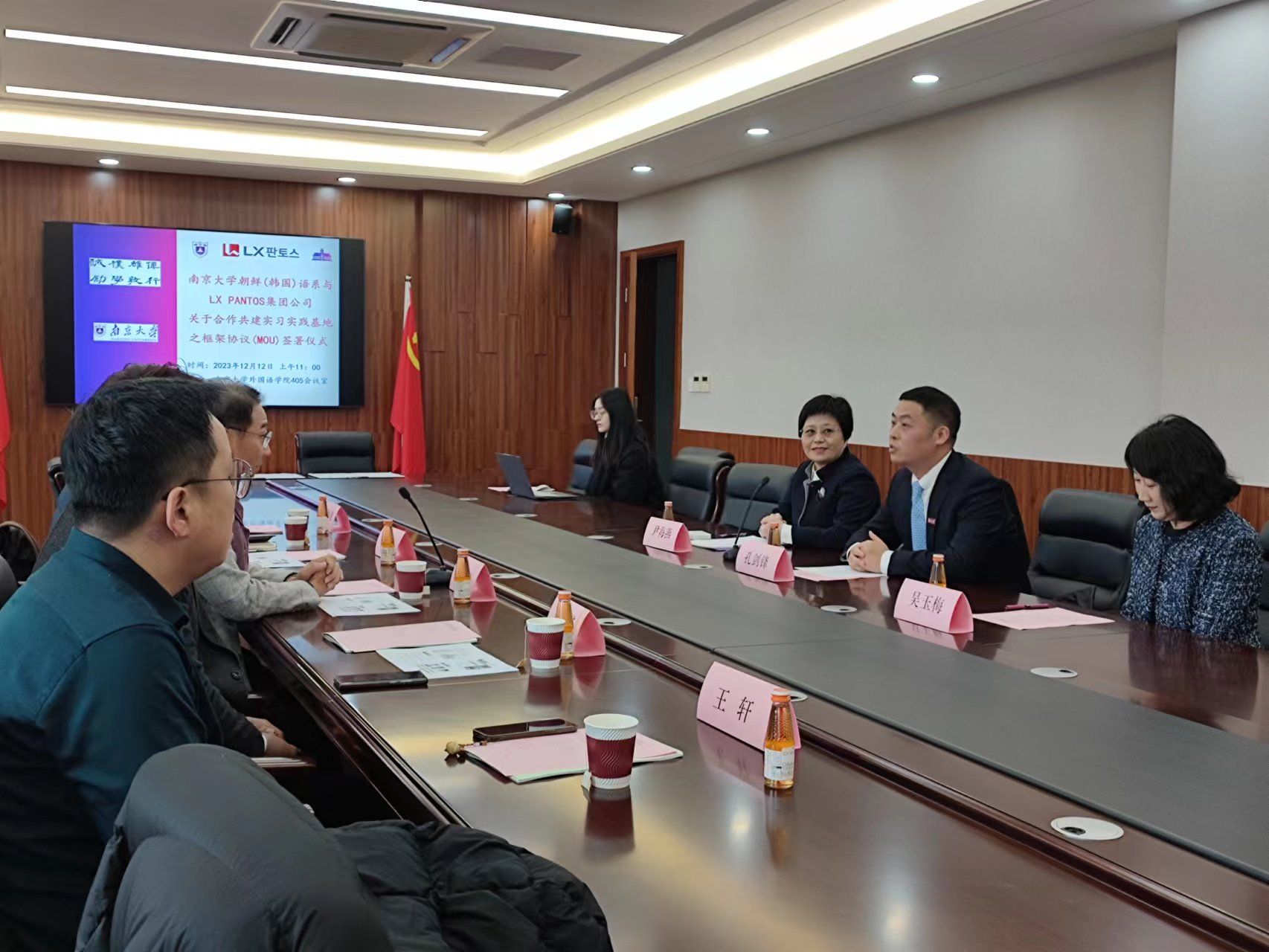 12月12日上午,韩国LX PANTOS(乐尔幸泛通世物流)集团公司中国区CEO邢甲洙先生一行到访凯发k8官网外国语学院,并与朝鲜语系签署关于合作共建实习实践基地之框架协议。外国语学院党委副书记孔剑锋、朝鲜语系主任尹海燕、LX PANTOS中国HR Team长姜铨谋、凯发k8官网地区负责人南成熙、人事经理陈振瑜、王轩以及朝鲜语系师生代表等出席活动。