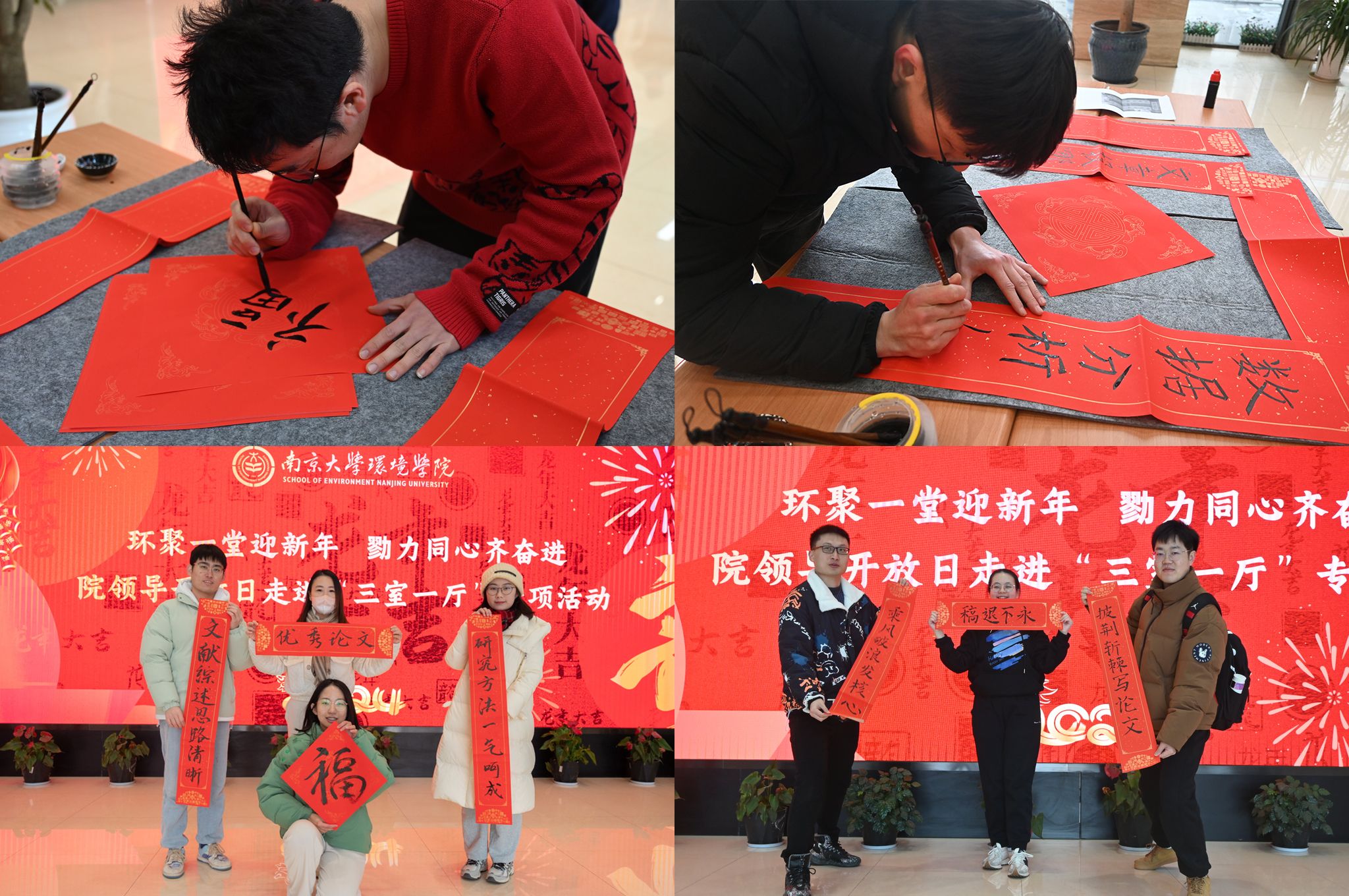 瑞雪飘飞澄玉宇,金龙贺岁迎新年。2023年12月26日,环境学院举办“环聚一堂迎新年,勠力同心齐奋进”院领导开放日走进“三室一厅”师生迎新年活动。中国工程院院士、环境学院院长任洪强,党委书记刘建萍、副书记周媛,副院长周庆、赵瑜,环境工程系主任张淑娟,环境规划与管理系副主任黄蕾,环境科学系副主任历红波,办公室主任余洋,德育导师、班主任、辅导员与同学们一起,送祝福、写对联、包饺子,喜迎新年。