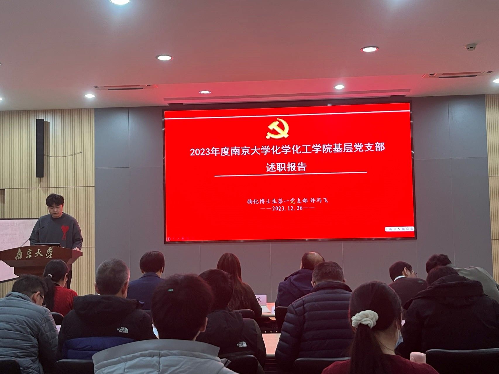 12月26日,化学化工学院党委召开了2023年度基层党支部书记述职评议会。会议由学院党委书记朱成建主持,党委组织部副部长范赟到会指导,院党委委员及全体师生党支部书记参加了会议。