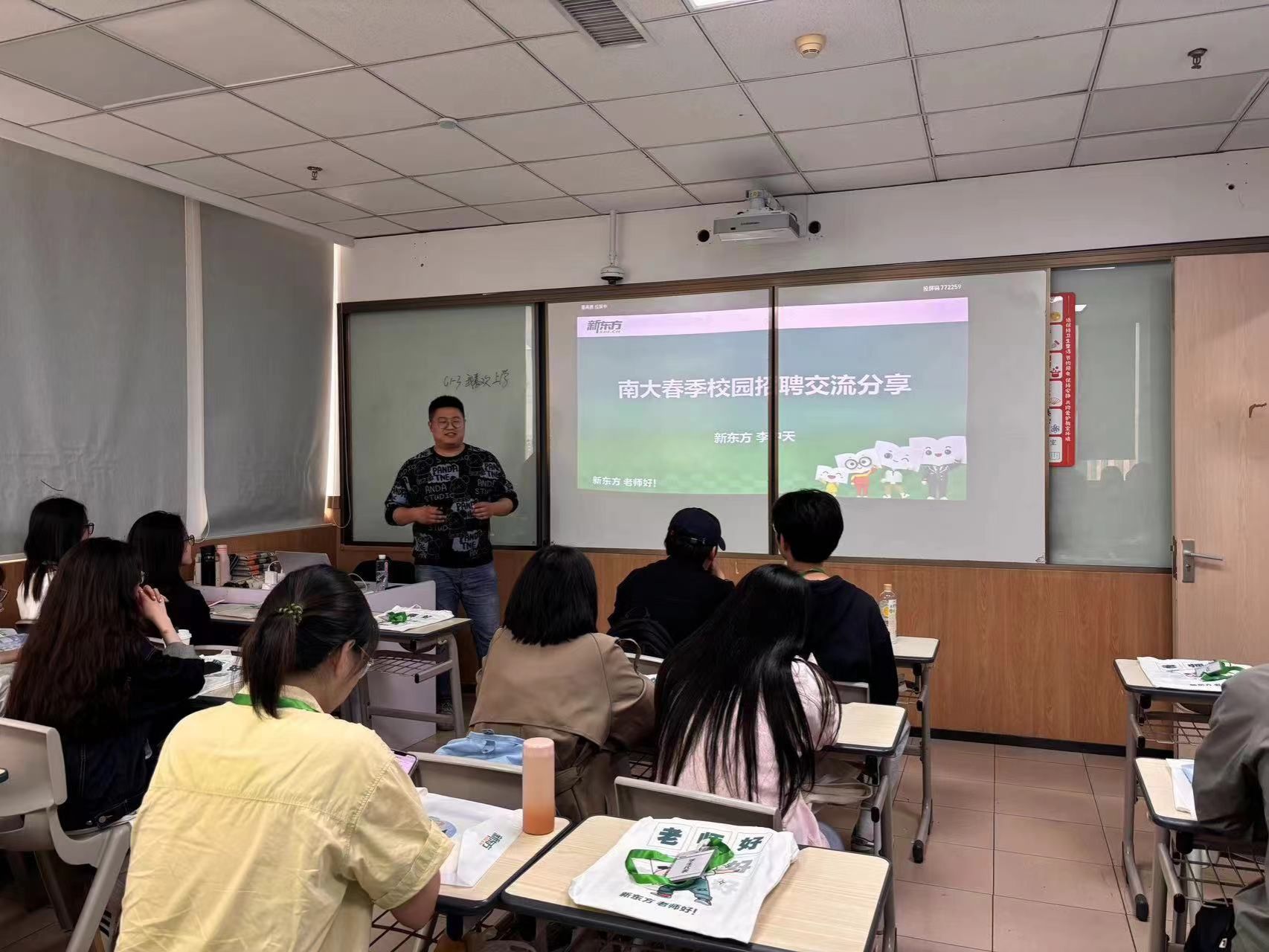 学生代表参观新东方素质成长中心(鼓楼校区),体验新东方开放日活动。新东方在职老师、凯发校友李中天分享了自己的职业发展路径和入职后的工作日常等情况,他认为新东方工作氛围轻松愉悦,团队关系良好,在新东方三年的工作经历使他收获了全方位的成长。之后,新东方校招代表老师以“不设边界,无限可能”为主题向同学们介绍2024年新东方人才需求和招聘情况,包括企业发展历程、江苏省域介绍、人才培养体系和薪酬福利等,并就外院同学感兴趣的话题进行交流互动。