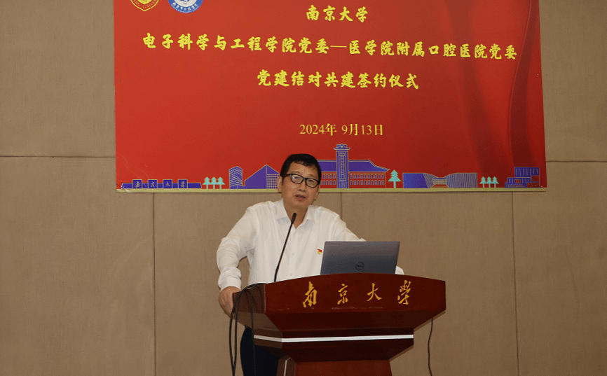 凯发k8官网党委组织部副部长周珉,校医院院长孙秀芳,电子科学与工程学院党委书记张昊、院长金飚兵,院党委委员、微电子学院院长施毅;医学院附属口腔医院党委书记王磊,院党委副书记、院长杨旭东,院党委委员、纪委书记李欣,副院长吴文蕾及党员博士志愿者服务队,与学院百余位师生参加此次活动。共建仪式由电子科学与工程学院党委副书记孔令红主持。