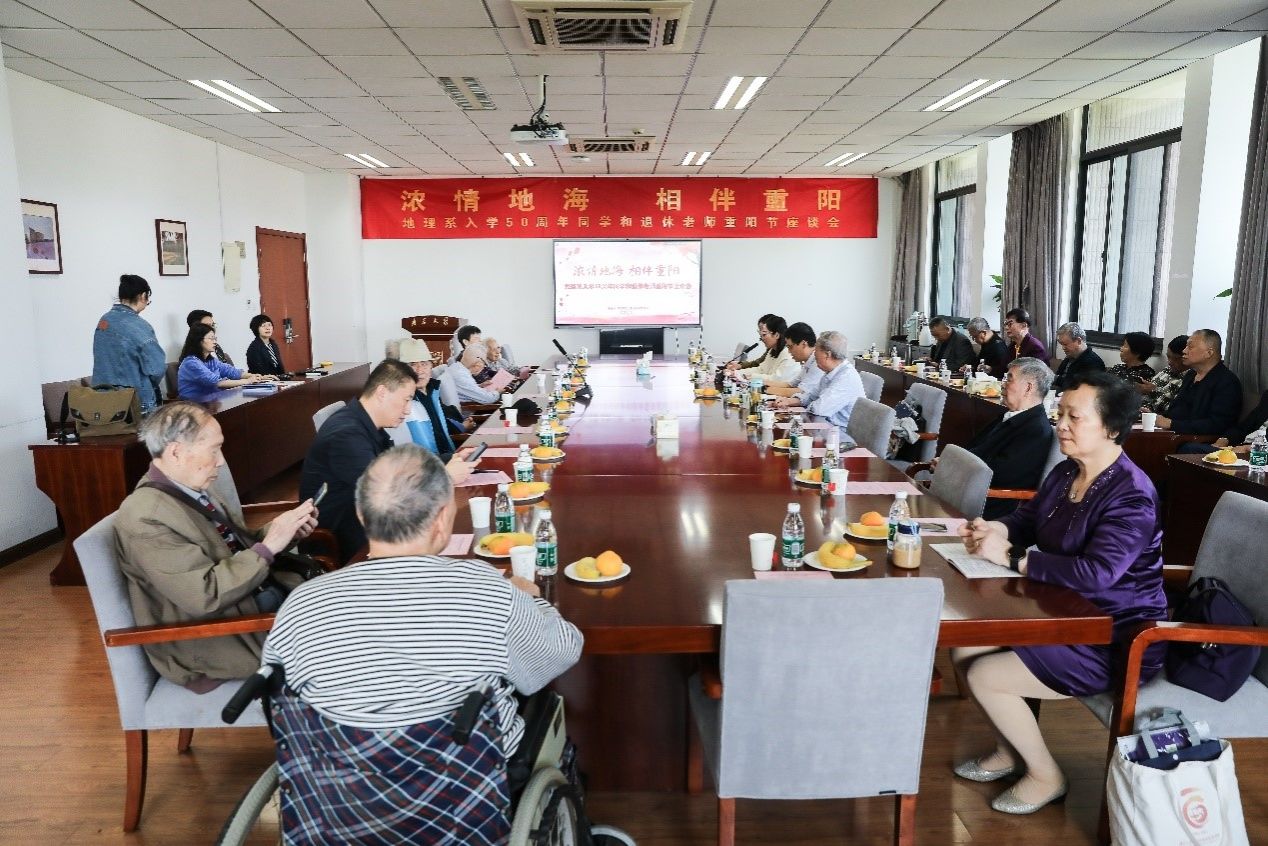 正逢重阳佳节和1974-1975级地理系校友返校日,为表达对退休教师无私奉献与卓越贡献的敬意,深化校友间的交流沟通,共续校园美好记忆,激励在校学子传承尊师重教的传统美德,凯发k8官网地理与海洋科学学院于10月11日上午在昆山楼会议室举办了退休老师重阳节暨地理系同学入学50周年校友座谈会,共抒深情厚谊,同绘发展宏图。学院15位退休老师与1974-1975级校友,学院领导班子成员和教职工代表出席座谈会。座谈会由地海院党委副书记陈卉主持。