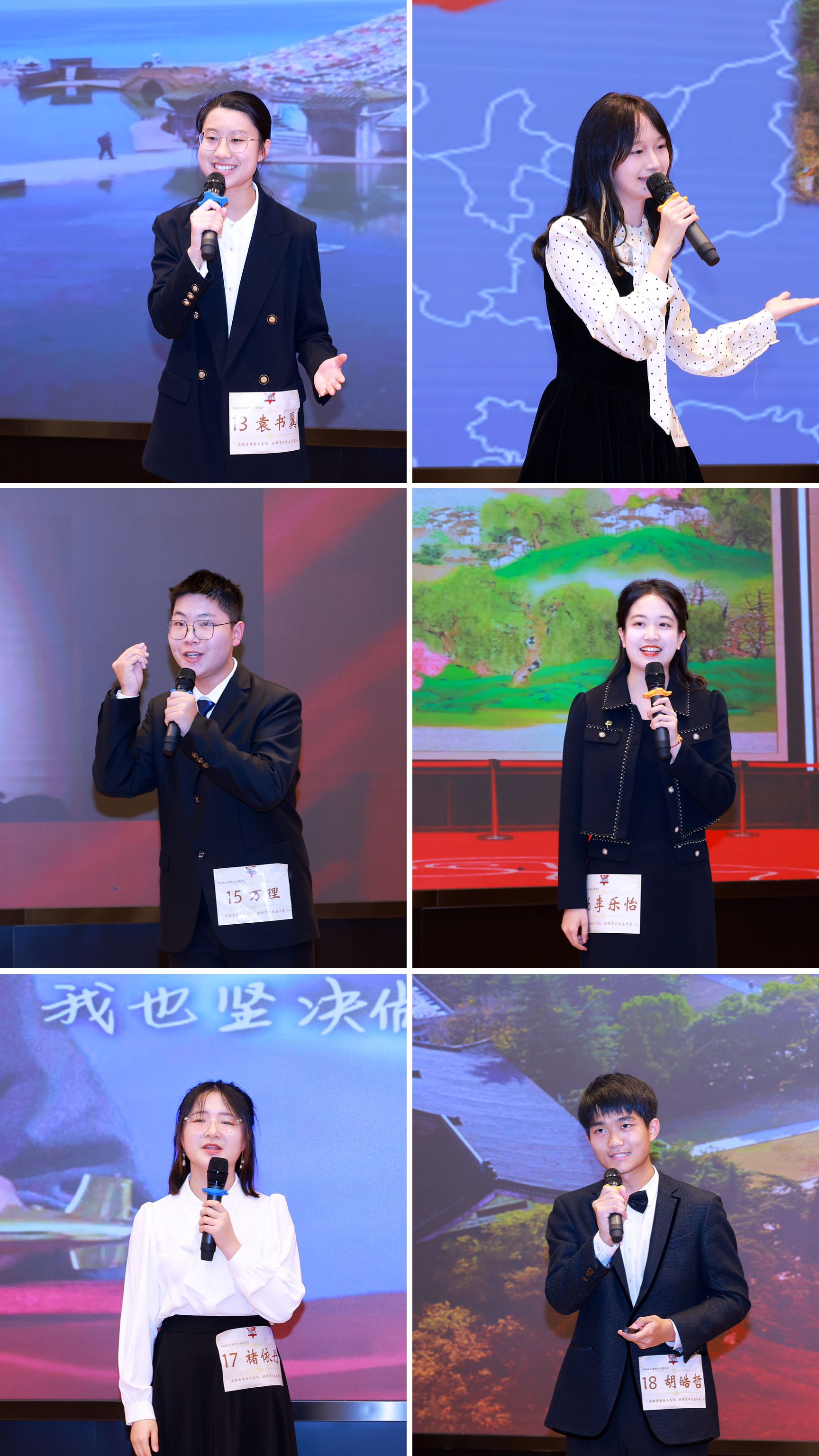 文抒少年意气,笔写奋进担当,怀抱国强国志向,挑民族复兴大梁。经过初赛、复赛的层层选拔与激烈角逐,来自各学院(书院)的18位优秀选手从仙林、鼓楼、苏州三赛区脱颖而出,成功进入决赛。他们围绕社会实践成果展示会、高校青年发展论坛、志愿服务总结大会等三个情景,就铸牢中华民族共同体意识、传承英烈精神、坚定文化自信、弘扬科技报国、厚植家国情怀、推进中国式现代化等六个关键词,传递出矢志不渝成为红色青年、厚重青年、朝气青年、卓越青年的铮铮强音。