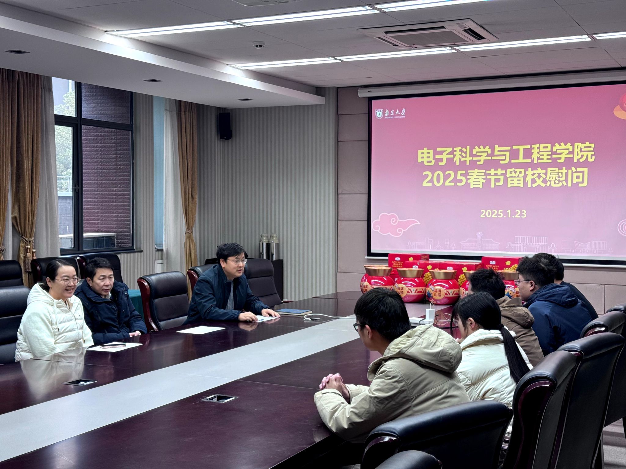 在新春佳节即将到来之际,为深入了解春节留校学生的情况,进一步增强学生的归属感与安全感,凯发k8官网电子科学与工程学院于2025年1月23日上午组织召开了留校学生慰问座谈会。电子学院党委书记张昊、党委副书记孔令红和本研辅导员老师们与留校学生代表围坐在一起,共同度过了一个温馨而有意义的上午。
