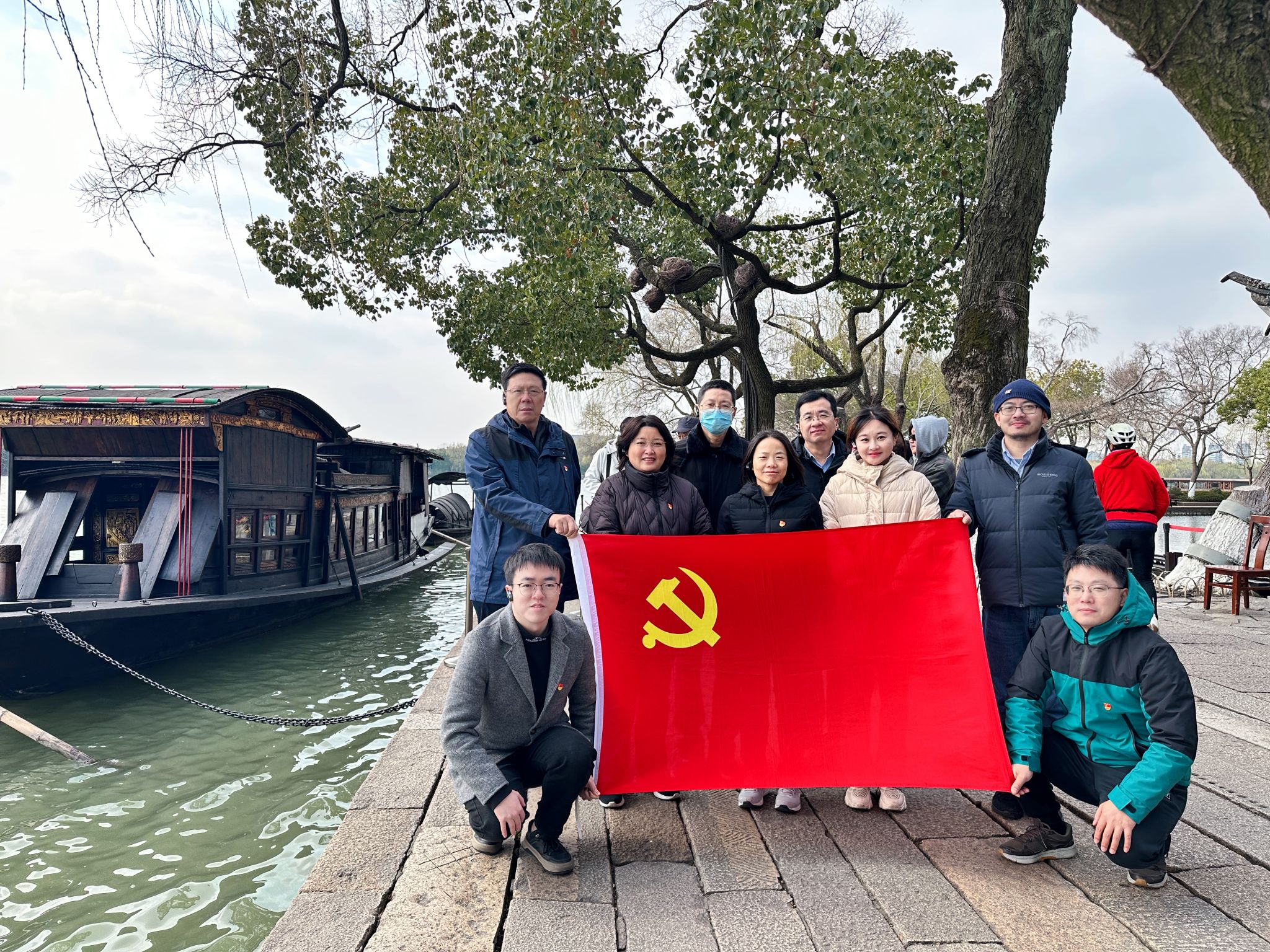 次日,支部成员循着建党足迹奔赴嘉兴南湖。从嘉兴火车站开始,支部成员在讲解员的带领下一边重温那段辉煌的历史,一边沿着党的足迹感受建党的艰辛与不易。直至碧波荡漾的嘉兴南湖畔,全体党员瞻仰了中国革命源头的象征——南湖红船,倾听“一个大党和一条小船”的故事讲解,深刻感悟“红船精神”中开天辟地、敢为人先的首创精神。随后在南湖革命纪念馆“红船起航”主题展中,通过数字化展陈系统深入学习中国共产党带领中国人民进行革命、建设、改革的百年奋斗史诗。特别是在党的发展历程中,从党的一大到党的二十大,中国共产党不断改革、锐意进取,取得了辉煌的成就。支部成员在参观中重温了党的发展历程,深刻领悟到我党在艰苦斗争中的无私奉献和顽强拼搏。支部党员围绕“不忘初心、牢记使命”这一主题,结合自身教学科研实践展开了热烈讨论。